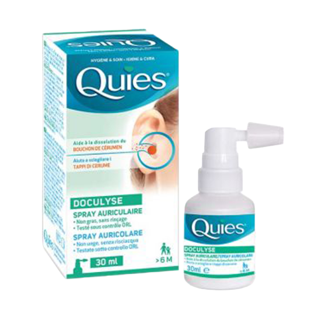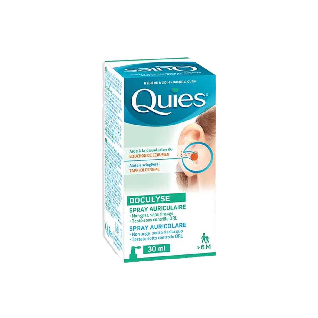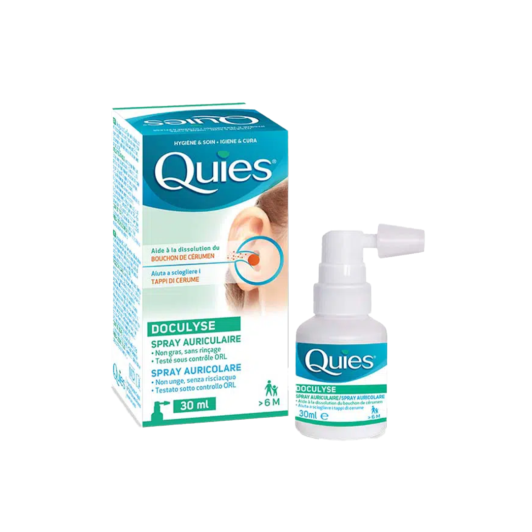 Doculyse est un spray qui élimine et prévient la formation de bouchons de cérumen. Sa formule composée de Docusate de Sodium (agent émollient) dissout et évacue le bouchon de cérumen. Testé sous contrôle ORL, il convient aux enfants dès 6 mois. Ce dispositif médical est un produit de santé réglementé qui porte, au titre de cette réglementation le marquage CE. Lire attentivement la notice. Demandez conseil à votre pharmacien.