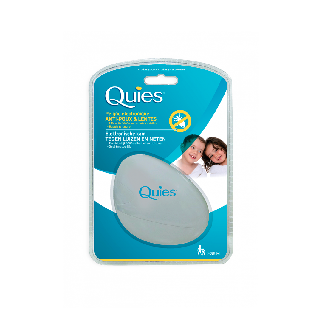 Quies propose une alternative naturelle aux traitements et répulsifs chimiques anti-poux qui agressent le cuir chevelu. Pratique d’utilisation, le peigne électronique Quies est indolore et inoffensif pour l’homme. Il peut être utilisé à partir de 3 ans.