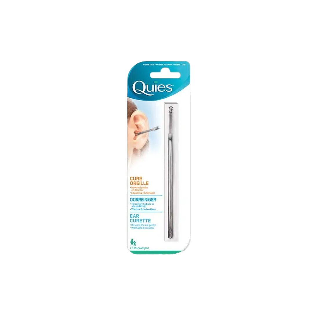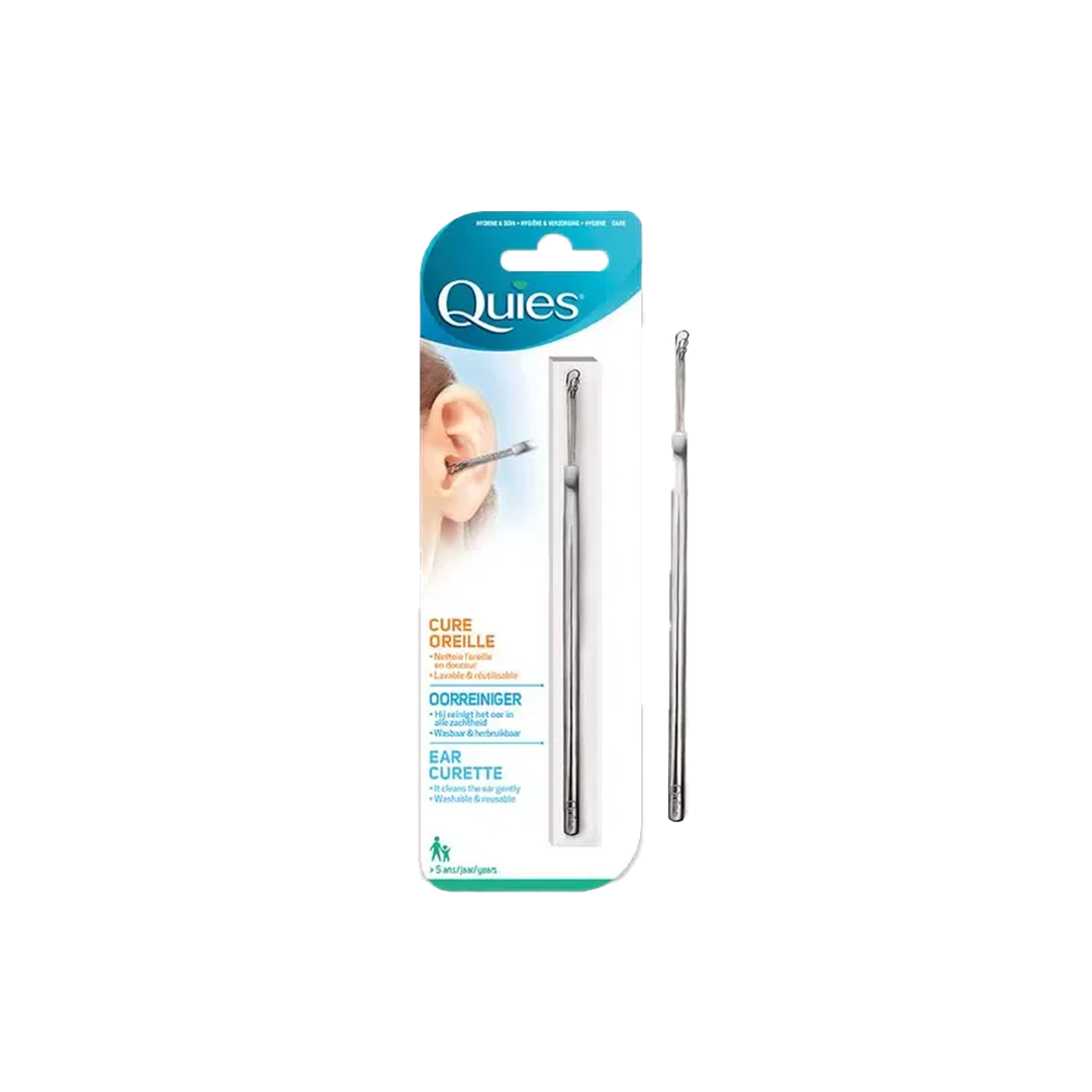 Nettoyable et réutilisable, le cure oreille Quies permet de nettoyer efficacement et en douceur tous les conduits auditifs grâce à ses 3 boucles. En acier inoxydable, il permet de minimiser les risques d’allergie et de remplacer les bâtonnets ouatés.