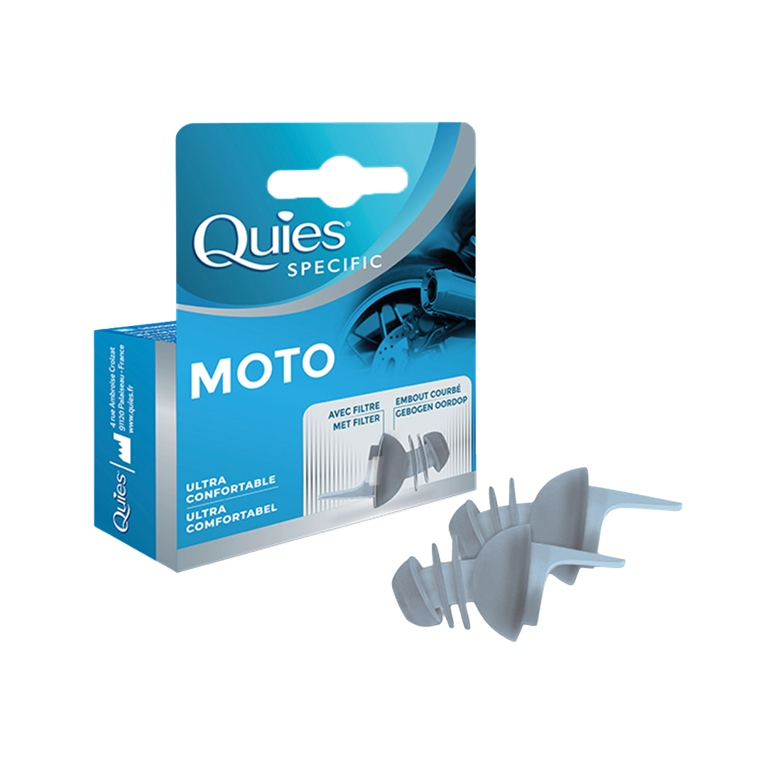 Les protections auditives Quies Specific Moto possèdent un filtre spécifique qui limite les bruits liés au vent ou au moteur et rendent votre trajet agréable, tout en conservant les sons d’alerte indispensables à votre sécurité (klaxons, bips sonores…).