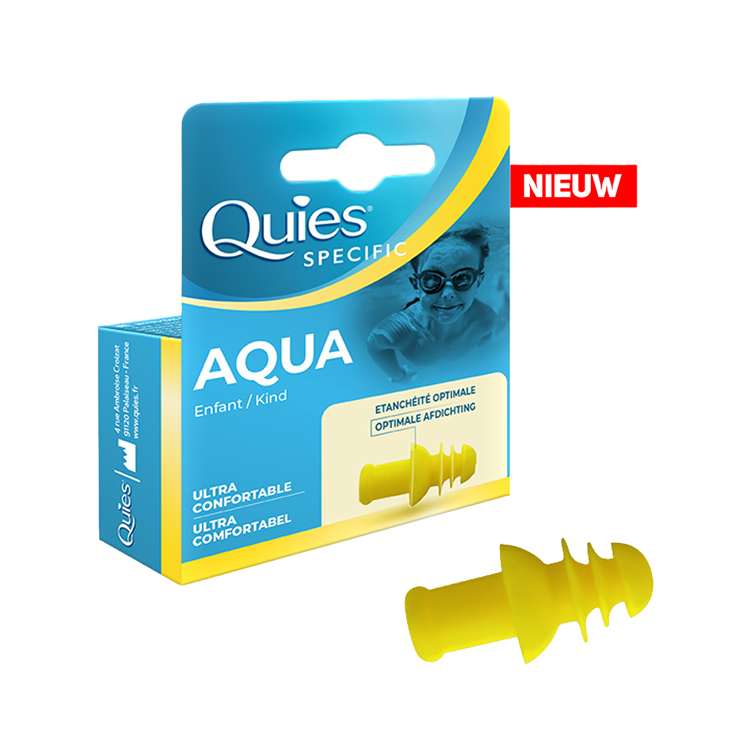 De Quies Aqua bescherming voor kinderen is ontworpen om de oren van kinderen te beschermen bij het zwemmen, zowel in het zwembad als in de zee, in de douche of bij watersporten. Ze hebben de juiste maat voor kleine gehoorgangen en bieden optimale bescherming en langdurig comfort. Dankzij hun ergonomische vorm met 4 flenzen, garanderen ze een perfecte afsluiting en kunnen ze comfortabel gedragen worden zonder irritatie. Deze oordopjes zijn ook geschikt voor volwassenen met kleinere gehoorgangen. Ze zijn herbruikbaar, gemakkelijk schoon te maken en worden geleverd met een praktisch opbergdoosje. De Aqua Kind kan afzonderlijk of onder een badmuts gedragen worden, zodat kinderen zich nog van hun omgevingsgeluid bewust blijven.