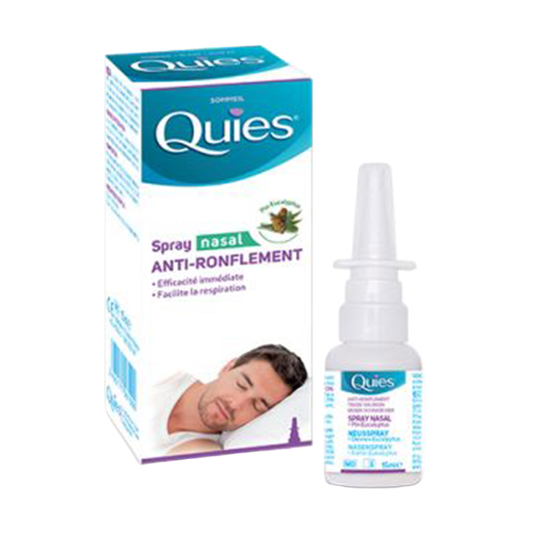 De Quies Neusspray tegen snurkensmeert de neusgaten is samengesteld met speciaal geselecteerde ingrediënten om de neusholten te smeren, te ontzwellen en de luchtwegen vrij te maken, de luchtstroom te verbeteren en snurken te verminderen. Deze medische hulpmiddelen zijn gereglementeerde gezondheidsproducten die in het kader van deze verordening van het CE-merkteken zijn voorzien. Lees de instructies zorgvuldig. Vraag uw apotheker om advies.