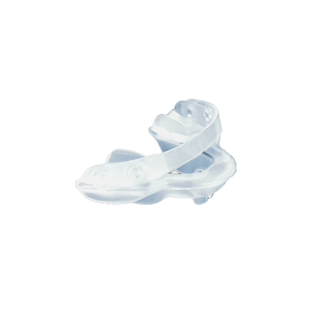 En maintenant la mâchoire inférieure en position légèrement avancée (quelques millimètres), les voies respiratoires vont s’ouvrir, permettant ainsi le passage de l’air inspiré. La gouttière buccale est adaptable grâce aux différentes bandes souples fournies.